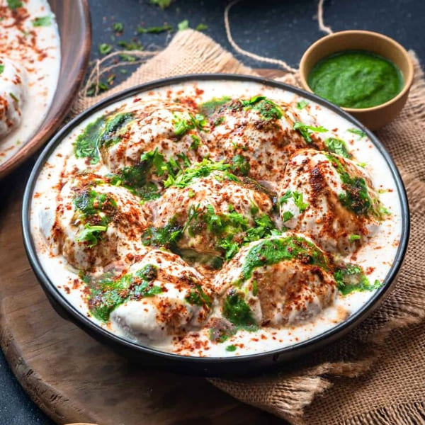 (Lentil Balls dipped in yogurt, tamarind & mint sauce)